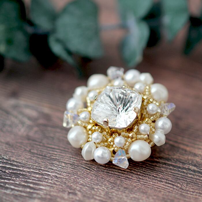 そんなビジューを様々な大きさ、形のパールとガラスビーズで囲んでいます。