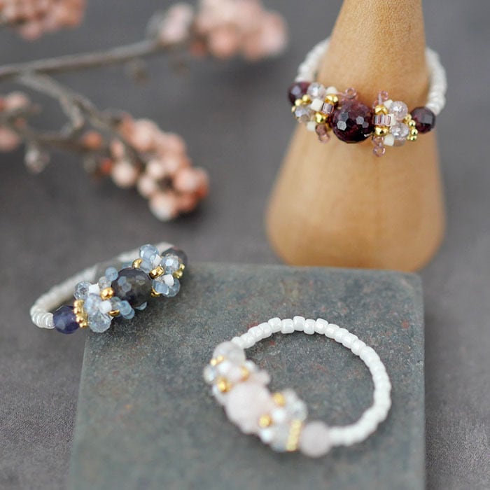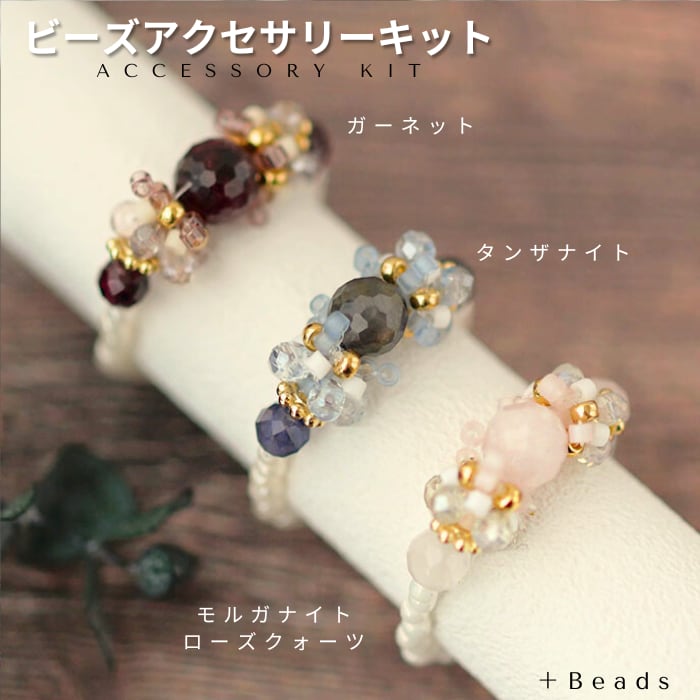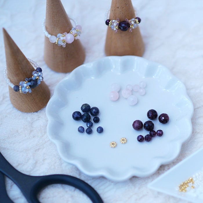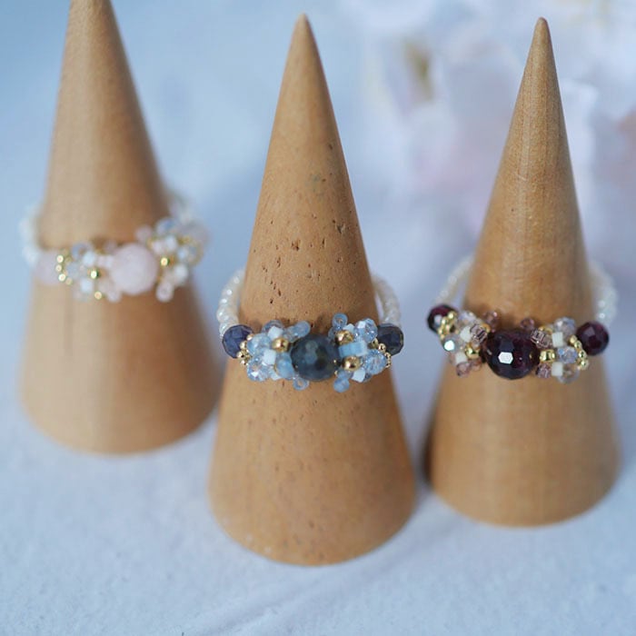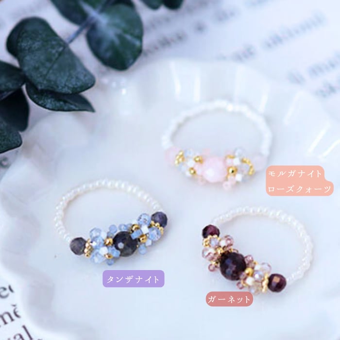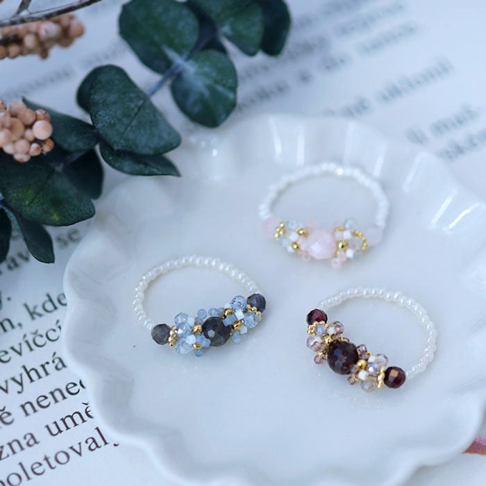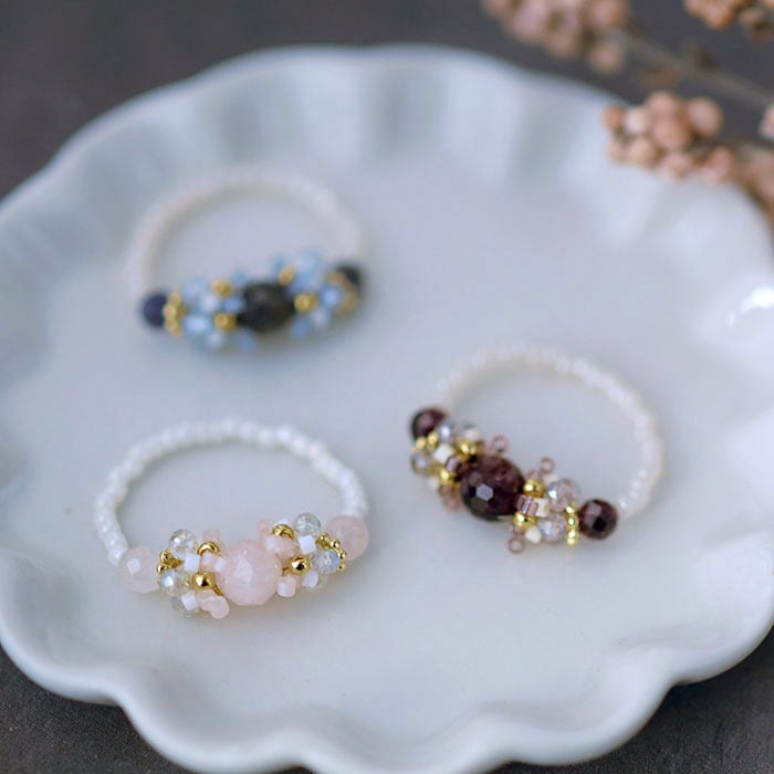 冬の装いに、そっと寄り添う 天然石のテグス編みリングキット。