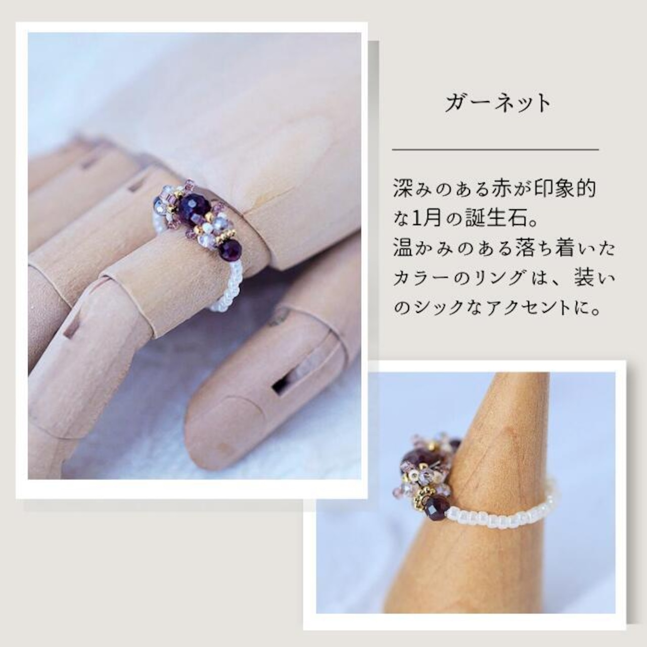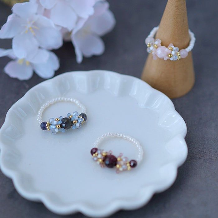 石によって仕上がりの雰囲気が違うのも楽しいリングキットです、ぜひ色違いで作ってみてください♪