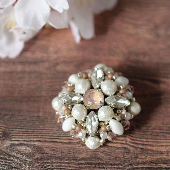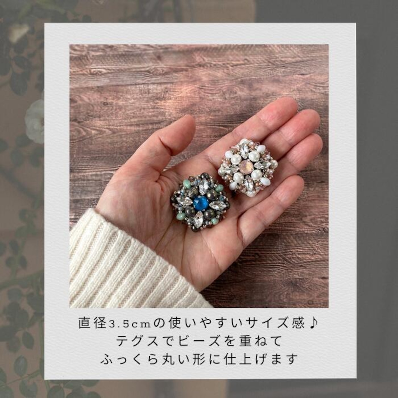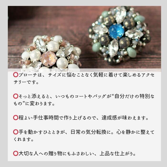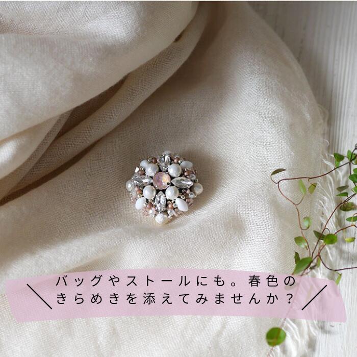 装いにそっと春を添えるような丸くふっくらとした マカロン型のビジューブローチキットです。