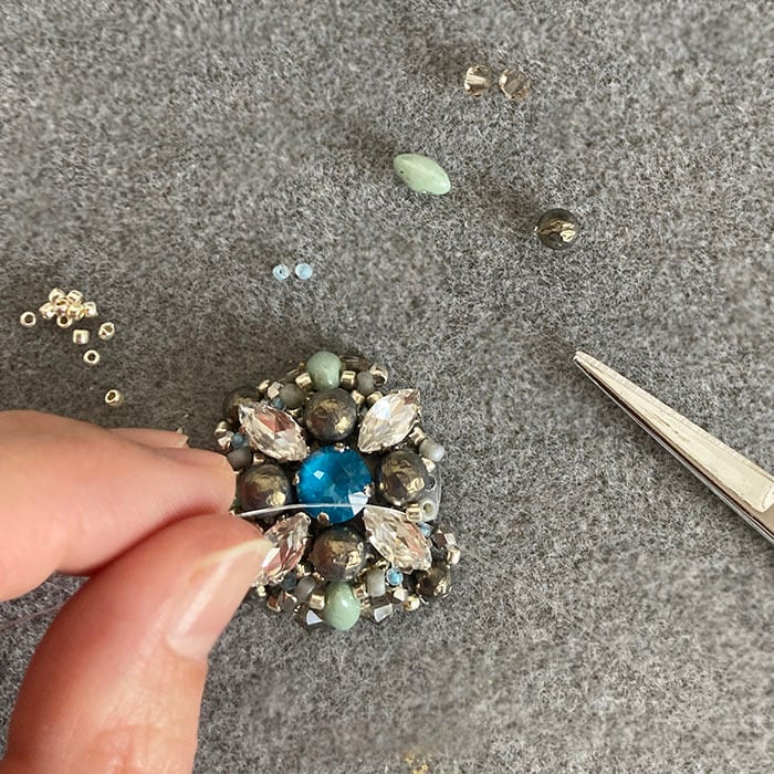 ビーズを少しずつ編み重ねていくことで、ふっくらとしたマカロンのような形が生まれます。