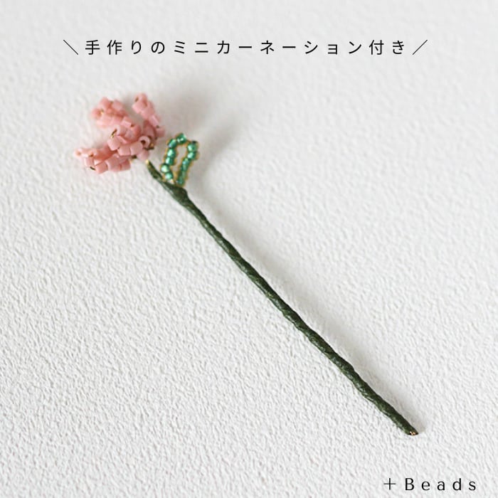 ミニカーネーションのビーズフラワー付きのラッピングキットです。