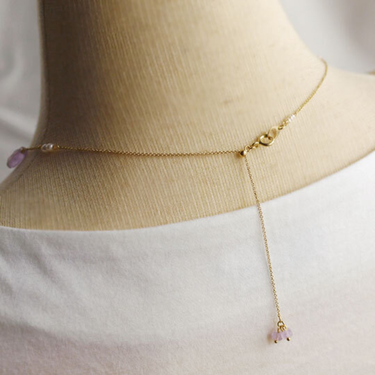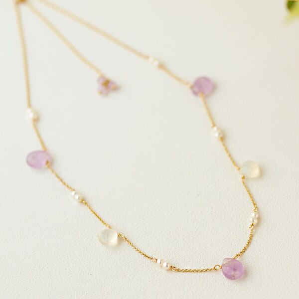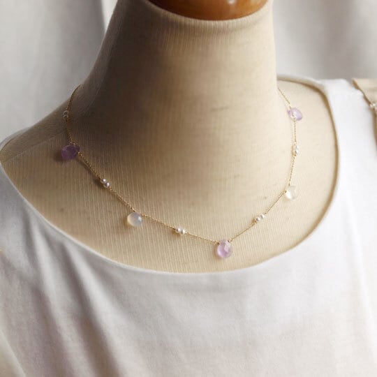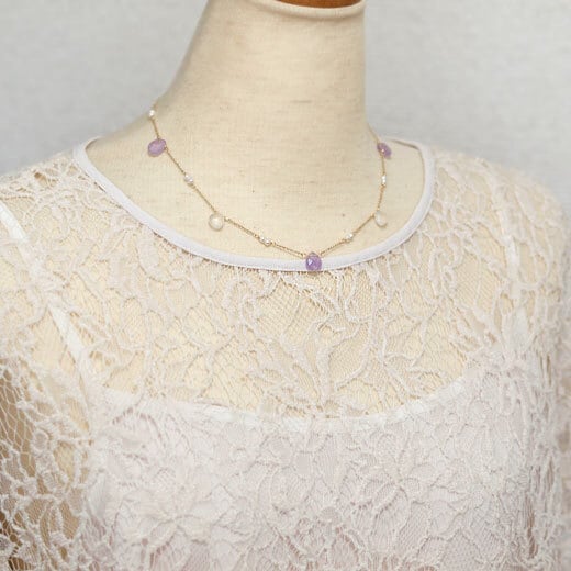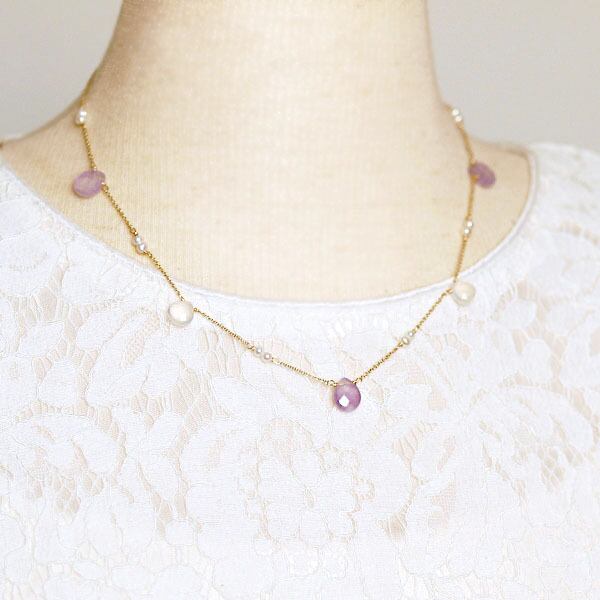 ほんのりとした紫色のラベンダーアメジストドロップのネックレス。